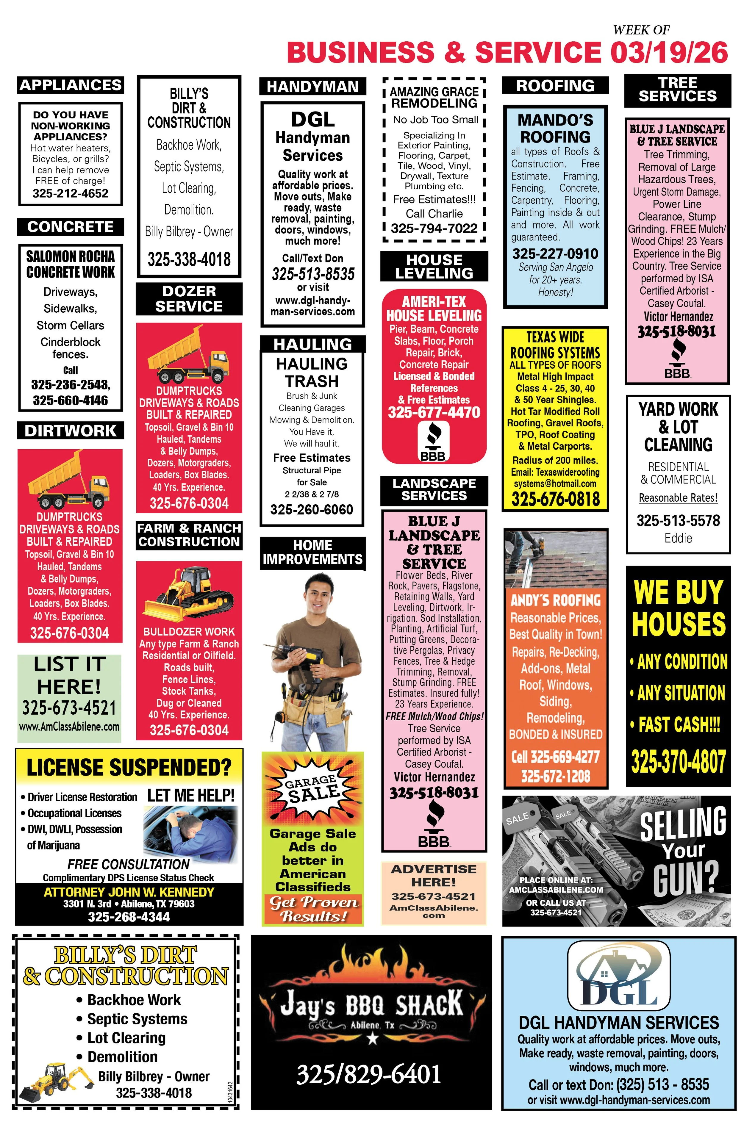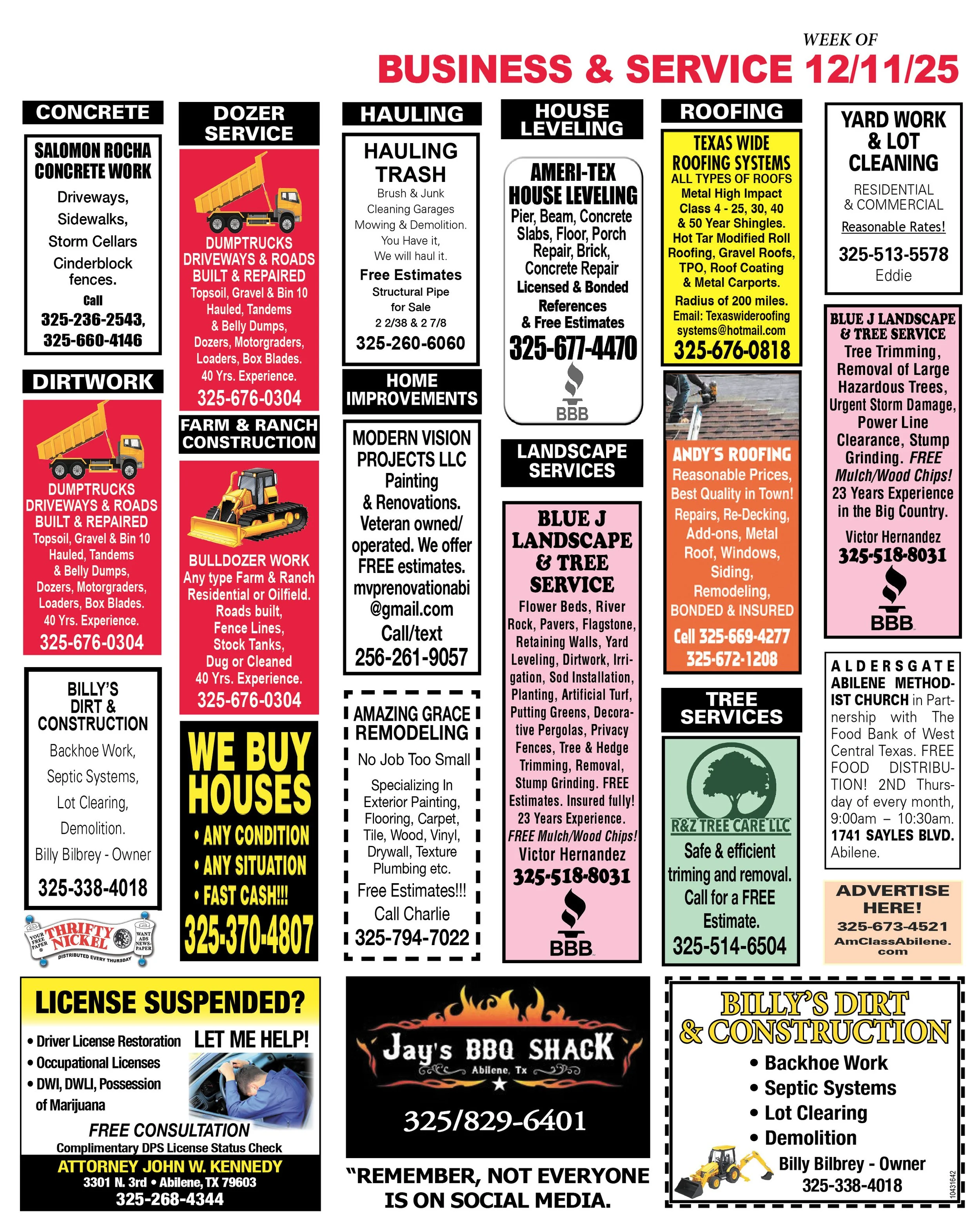 DO YOU NEED AN AD PLACED IN THIS SECTION? GIVE US A CALL and ASK to SPEAK with Helen! Call us today at 325-673-4521